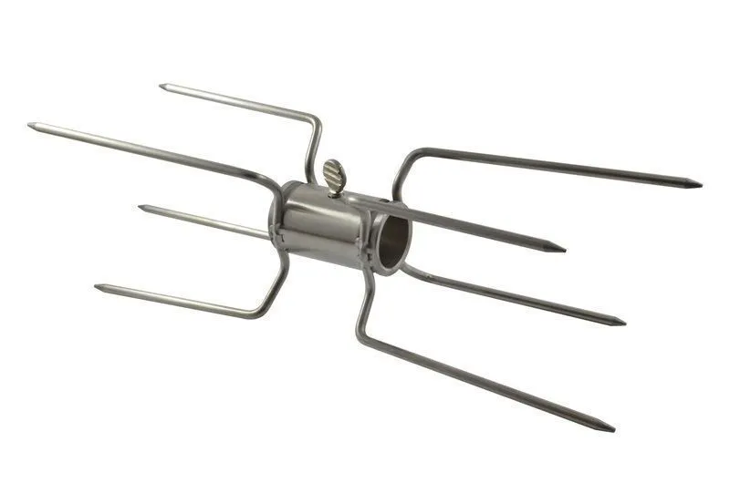 Spit Roaster Chicken Prongs - 22mm Round - 2x Double Sided (Stainless Steel) are suitable for affixing chickens, rolls of meat or pretty much any meat other than whole animals to a skewer. This double prong is suitable to use in between 2 other chicken prongs and allows 2 pieces of meat to be secured.