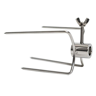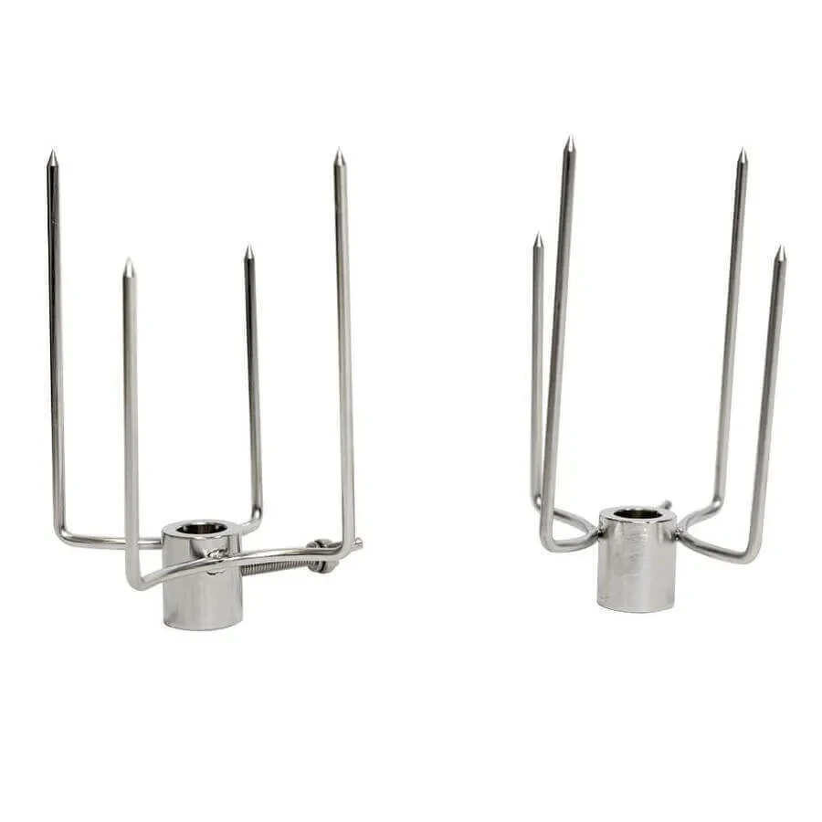 Rotisserie 4 Chickens - 22mm Round (Stainless Steel) are suitable for affixing chickens, rolls of meat or pretty much any meat other than whole animals to a skewer. This double prong is suitable to use in between 2 other chicken prongs and allows 2 pieces of meat to be secured.