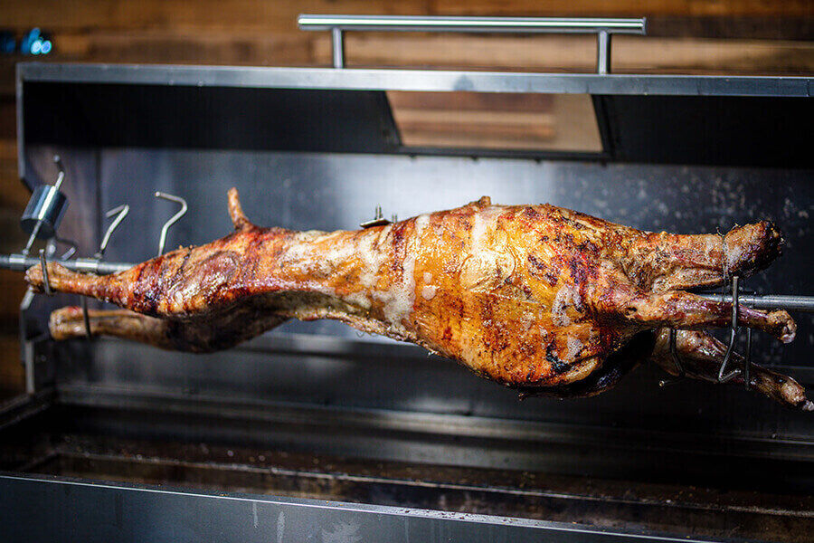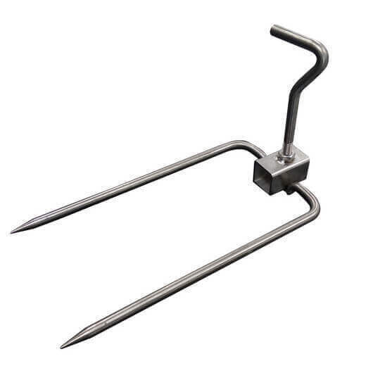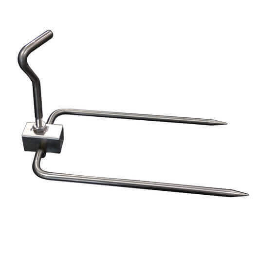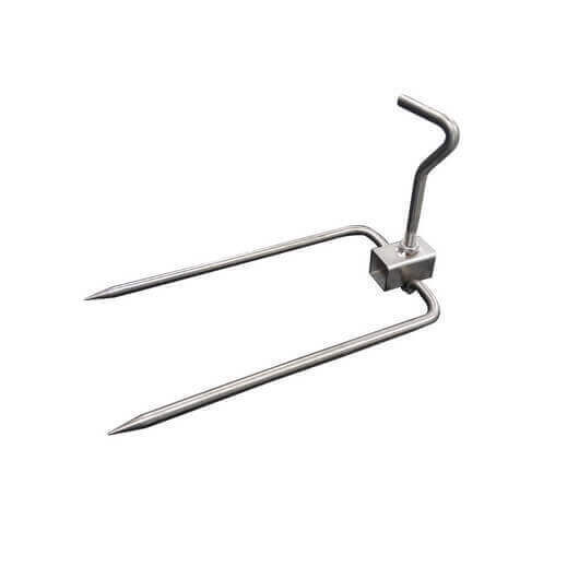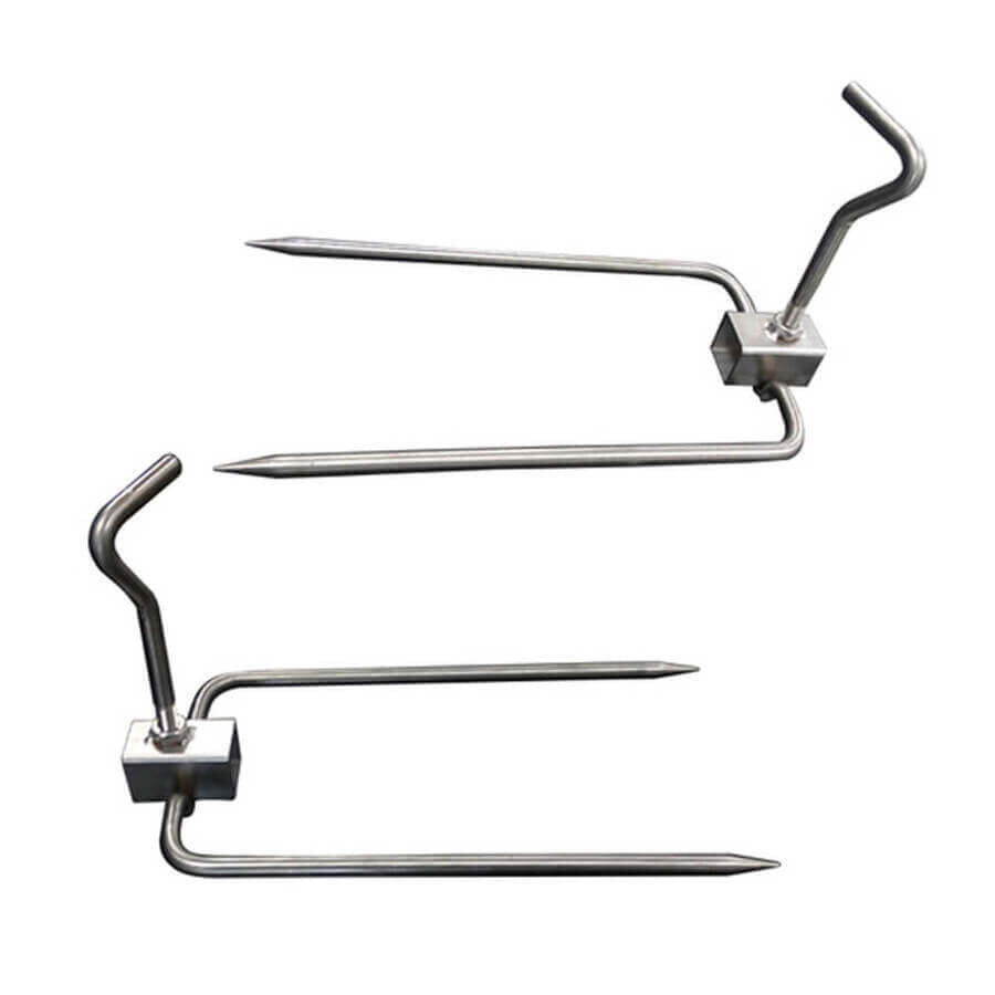Large prongs/forks are suitable for affixing whole animals or large pieces of meat to a skewer