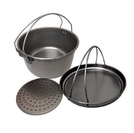 Designed for maximum versatility, this camp oven does it all frypan, boiler, hanging pot, and camp oven in one. Perfect for campers who value efficiency, it allows you to boil soups, fry eggs, or slow-cook meats without switching cookware. It’s a true all-rounder built for bush kitchens, backyard barbecues, and outback adventures.
