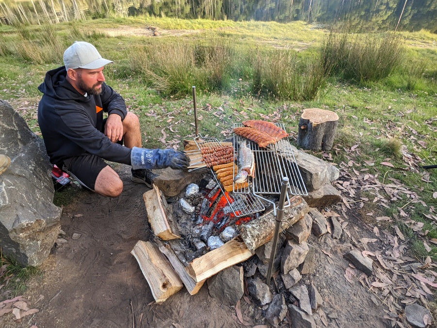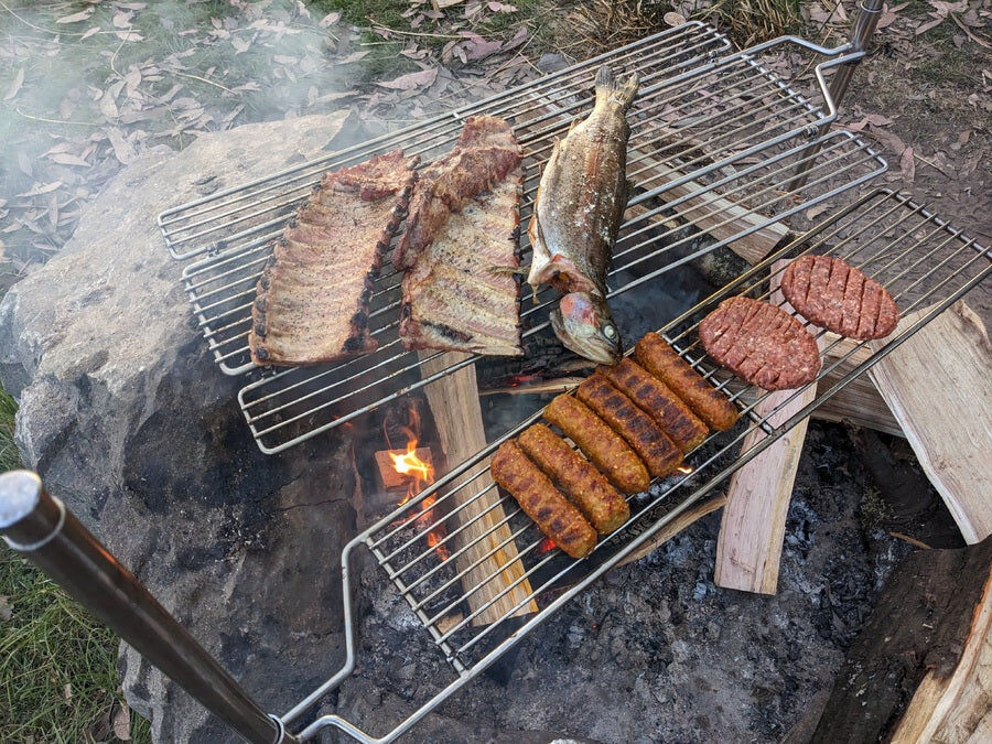 Enjoy true multitasking with this swinging grill and post clamp combo. Grill sides or smaller cuts of meat while your main spit roast turns, saving you time and keeping your entire meal cooking together over one fire.