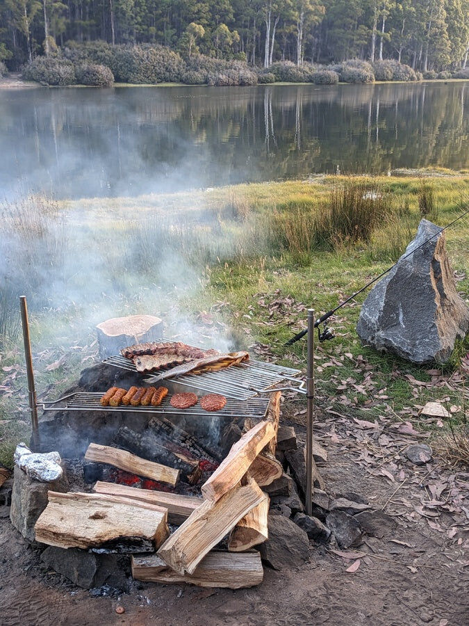 The Auspit Stainless Grill 680mm x 150mm w/ Post Clamp gives you the added option to grill some buns, sausages or veggies at the same time while cooking a spit on your auspit camping rotisserie