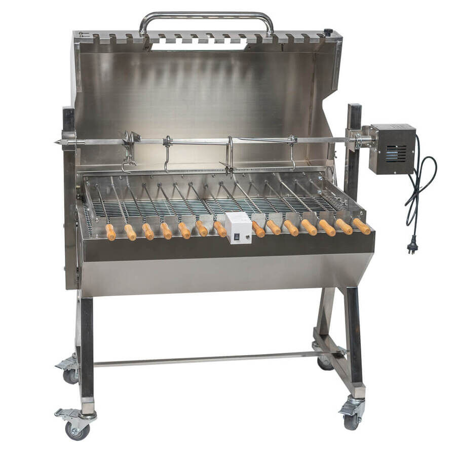 The Stainless Steel Hooded Rotisserie & Cyprus Grill is the perfect mid-sized spit roaster for entertainers. Strong, versatile, and easy to move, it’s designed to impress your guests without taking up too much storage space.