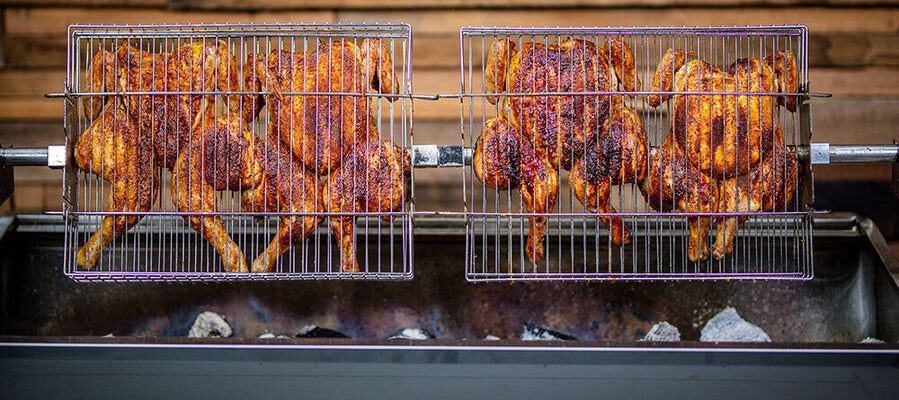 This hollow, one-piece, stainless steel skewer 1200mm is strong enough to hold 60kgs of meat.