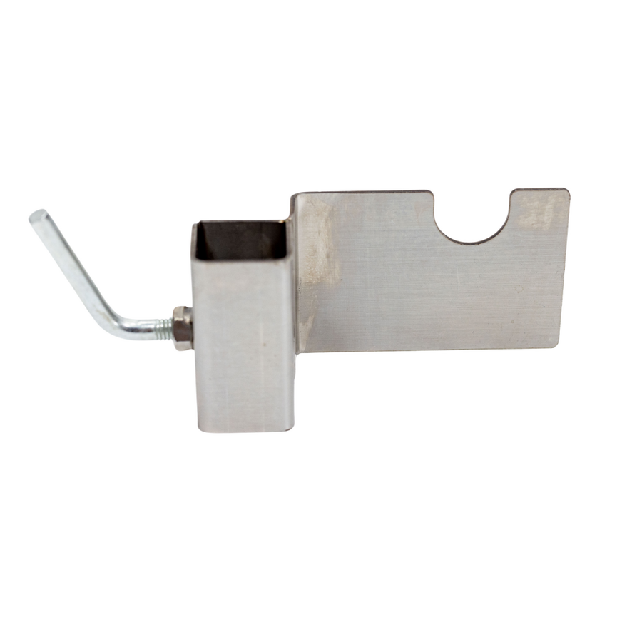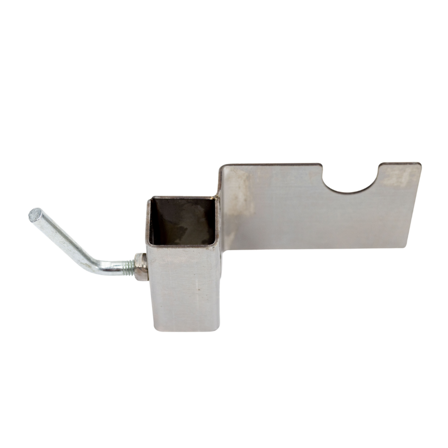 A Stainless Steel Skewer Support Bracket that is suitable for fitting onto a standard sized rectangular post measuring 25mm x 25mm. This spit roast skewer support bracket is used to either hold the pointy end of the skewer or to mount the Flaming Coals MO001 or MO002 model motors. This bracket is a must have if you're planning on building your own spit. The bracket slides up and down the post/upright pillar giving you full height adjustment functionality