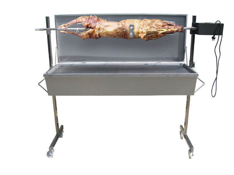 The removable wind shield not only protects against wind but doubles as a lid when the spit is not in use. Two stainless steel grills and a full-length charcoal pan mean you can also barbecue smaller items when not roasting whole animals.