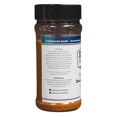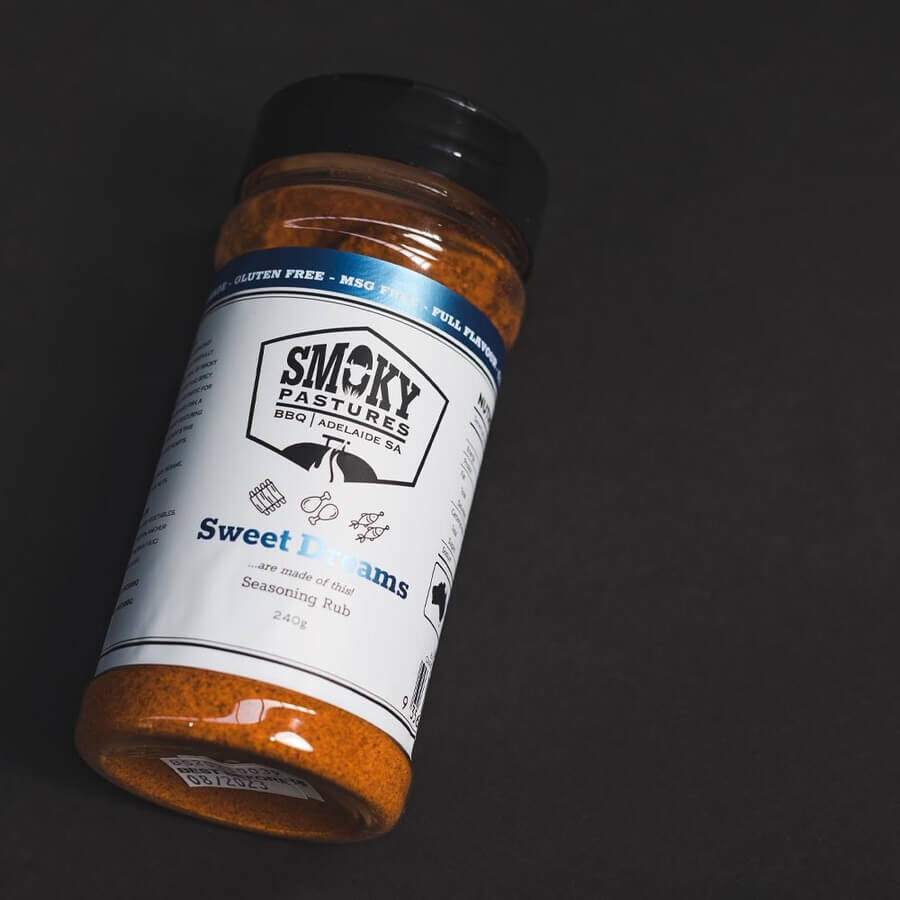Smokey Pastures Sweet Dreams Seasoning Rub has been carefully developed over time and trial by Smoky Pastures Bbq to add a sweet and spicy kick to anything you cook.