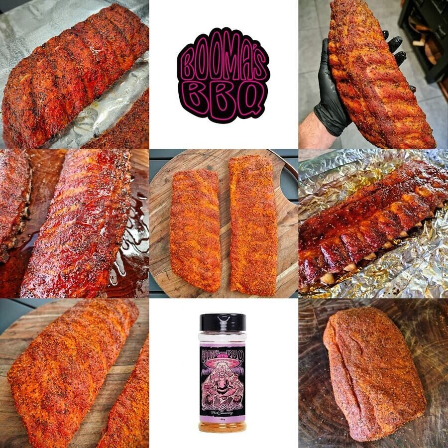 Booma takes BBQ seriously and before he released this pork rub it went through loads of testing, trial and opinion. Here are some cooks performed with Boomas Swine and Dine during testing. There is a mix of dry ribs and others wrapped only in butter. You can't deny that they look absolutely amazing.