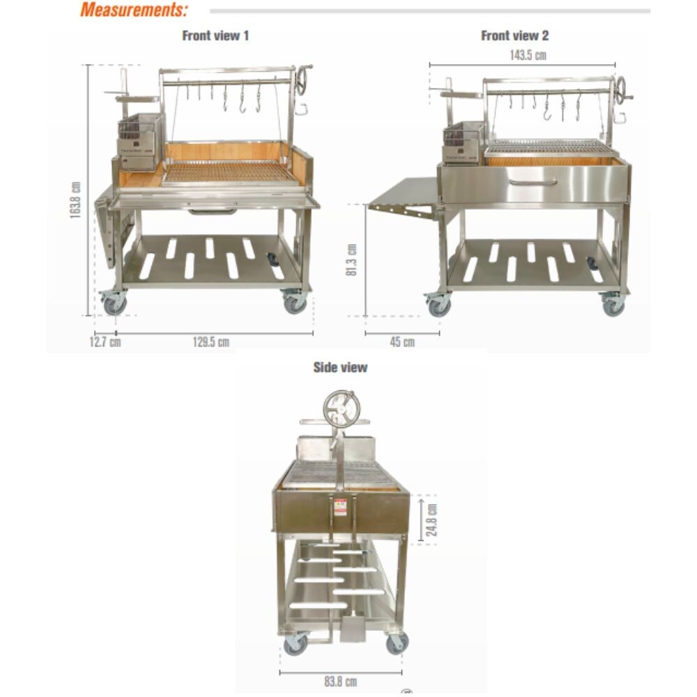 The gaucho style brasero firebox quickly ignites charcoal or firewood, while firebrick lined walls retain heat and reduce external temperature transfer. This ensures consistent cooking performance and improved efficiency.