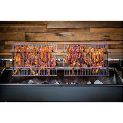Heavy duty stainless steel prongs designed for whole animals and large cuts. They grip firmly and rotate smoothly, giving you total control during long cooks.