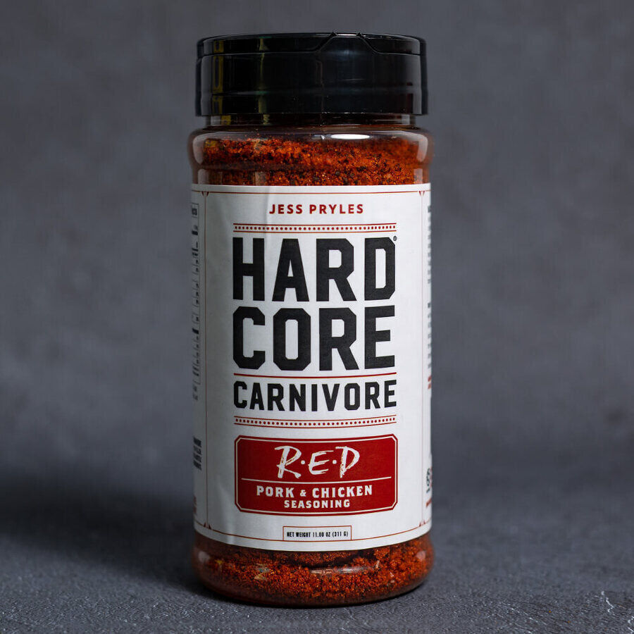 Hardcore Carnivore Red Seasoning 311g. This jet red coloured, charcoal based seasoning rub will totally transform your meats.