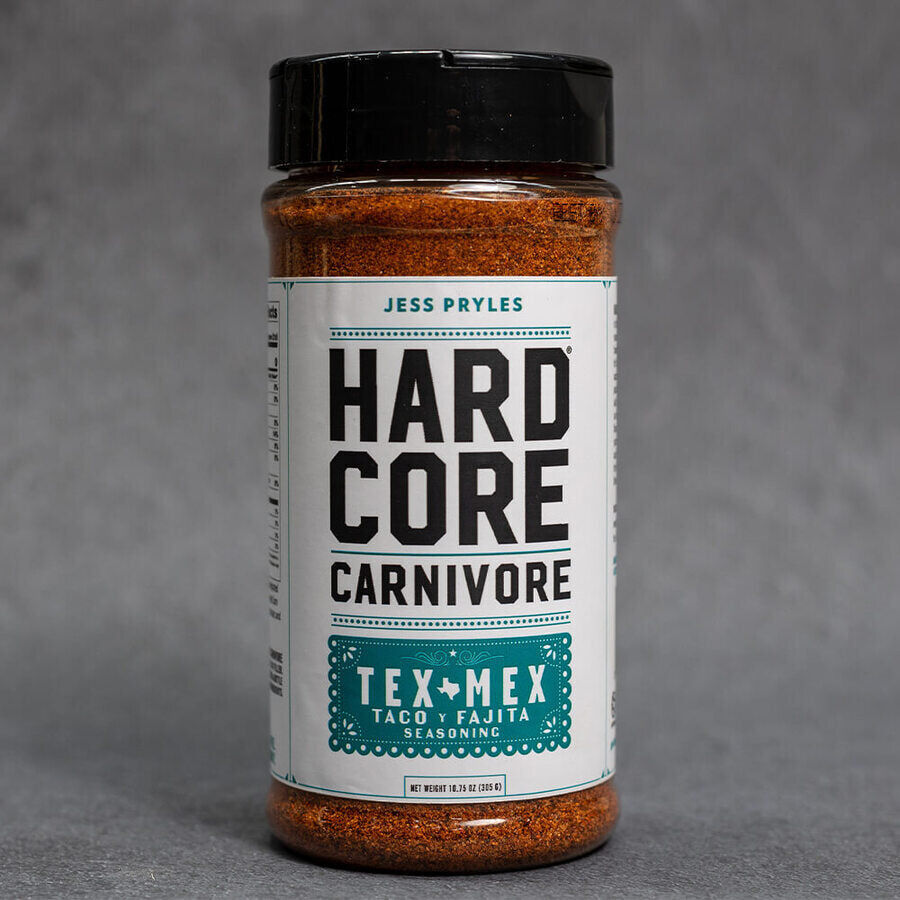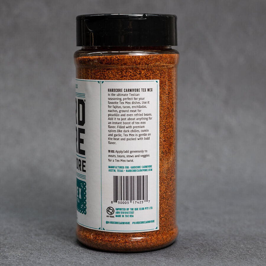 Hardcore Carnivore Tex Mex Taco Fajita Rub is the ultimate Texican seasoning, ideal for all of your favourite Tex Mex dishes. Use it in fajitas, tacos, enchiladas, nachos, picadillo, and even refried beans. Add it to almost anything for a burst of Tex-Mex flavour. Tex Mex has a mild to medium heat and a bold flavour profile due to the use of premium spices such as dark chillies, cumin, and garlic.