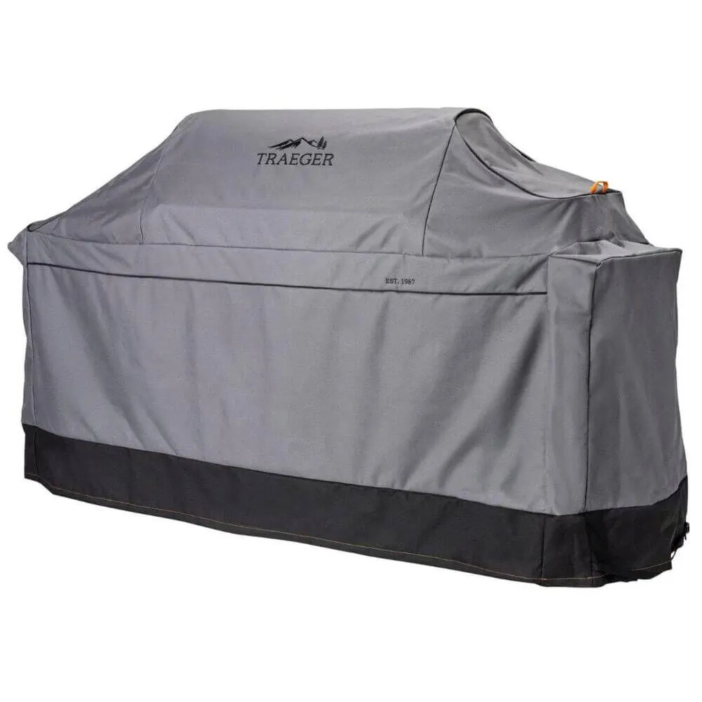 Traeger Full Length Grill Cover - Ironwood XL. Utilize a Full-Length Grill Cover to shield your Ironwood barbecue from the weather and maintain its impeccable condition. Its tough, all-weather fabric protects against the sun, snow, and rain. And don't worry-an expansion panel zips open to accommodate any P.A.L. Pop-And-Lock Accessory Rail attachments you have.