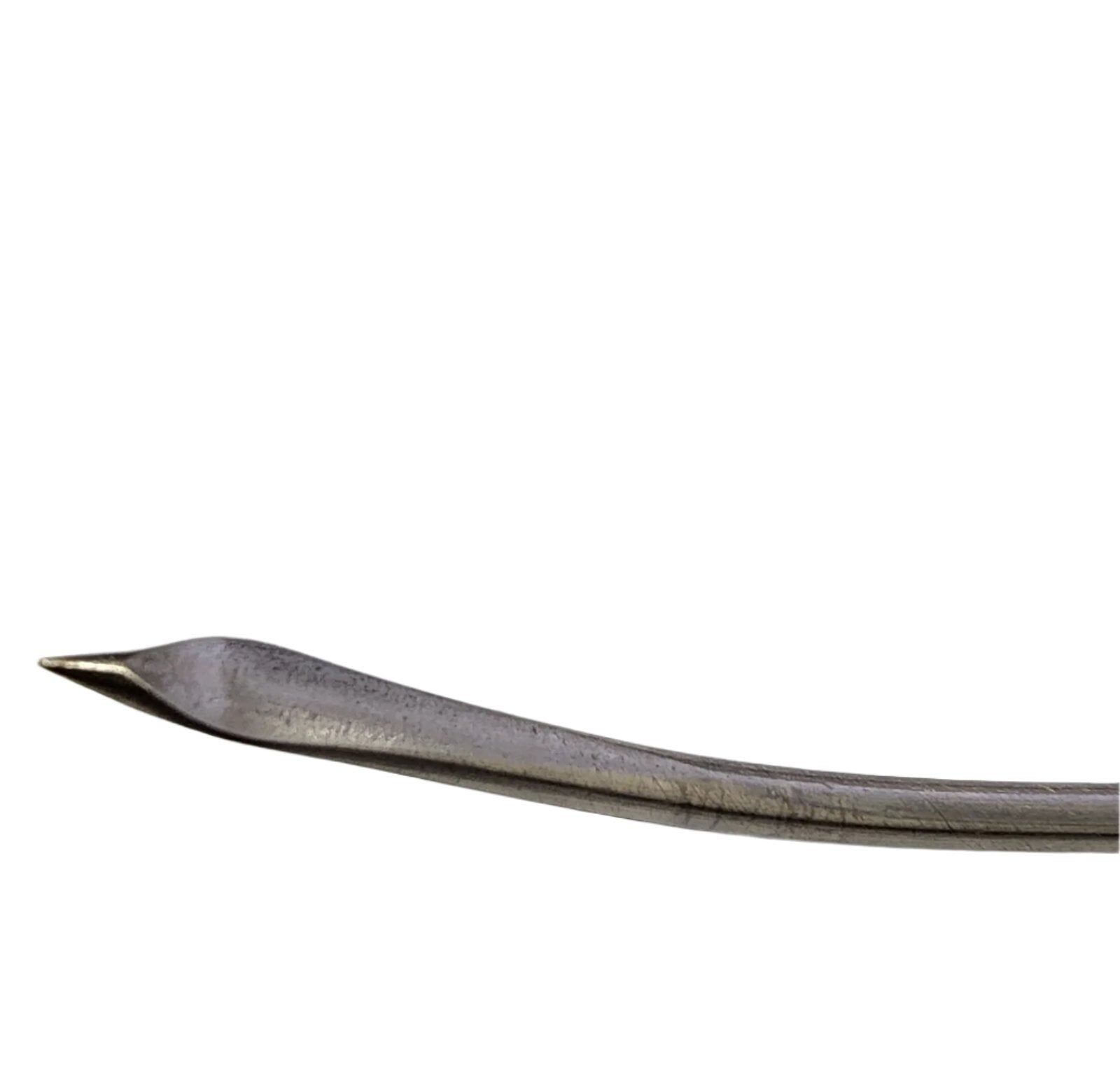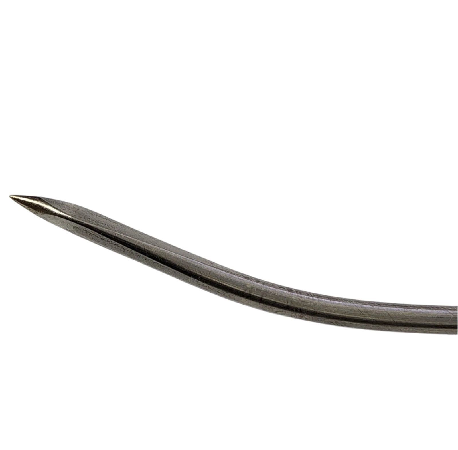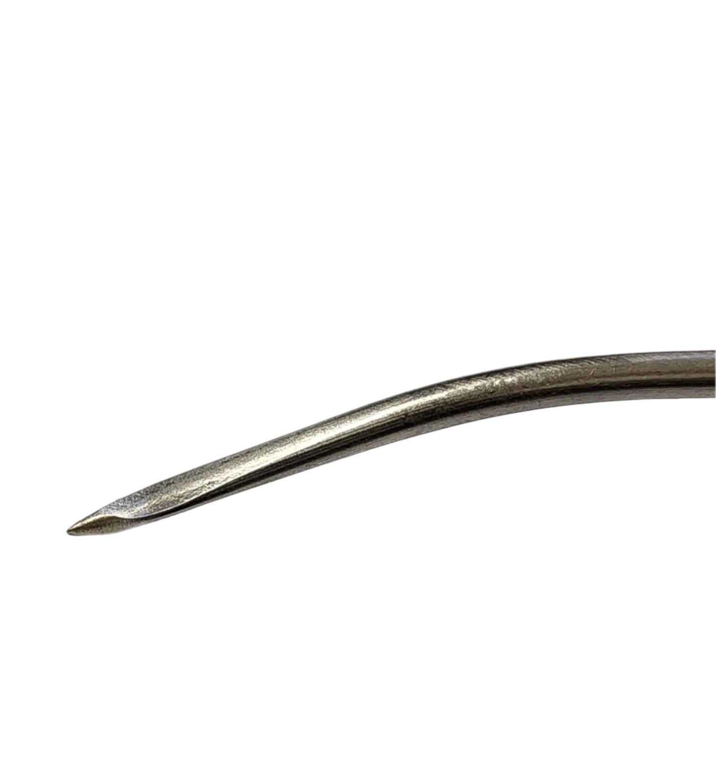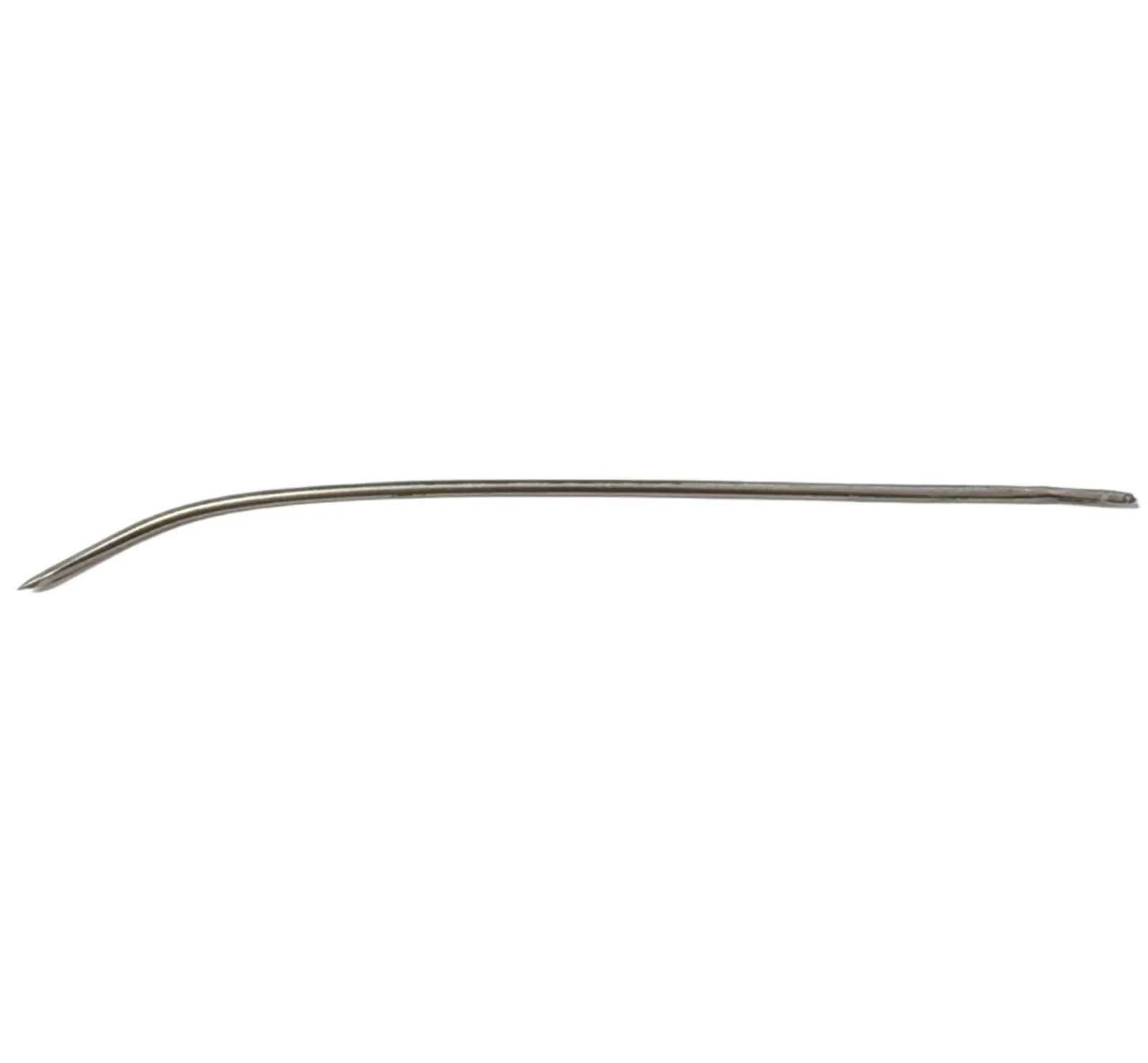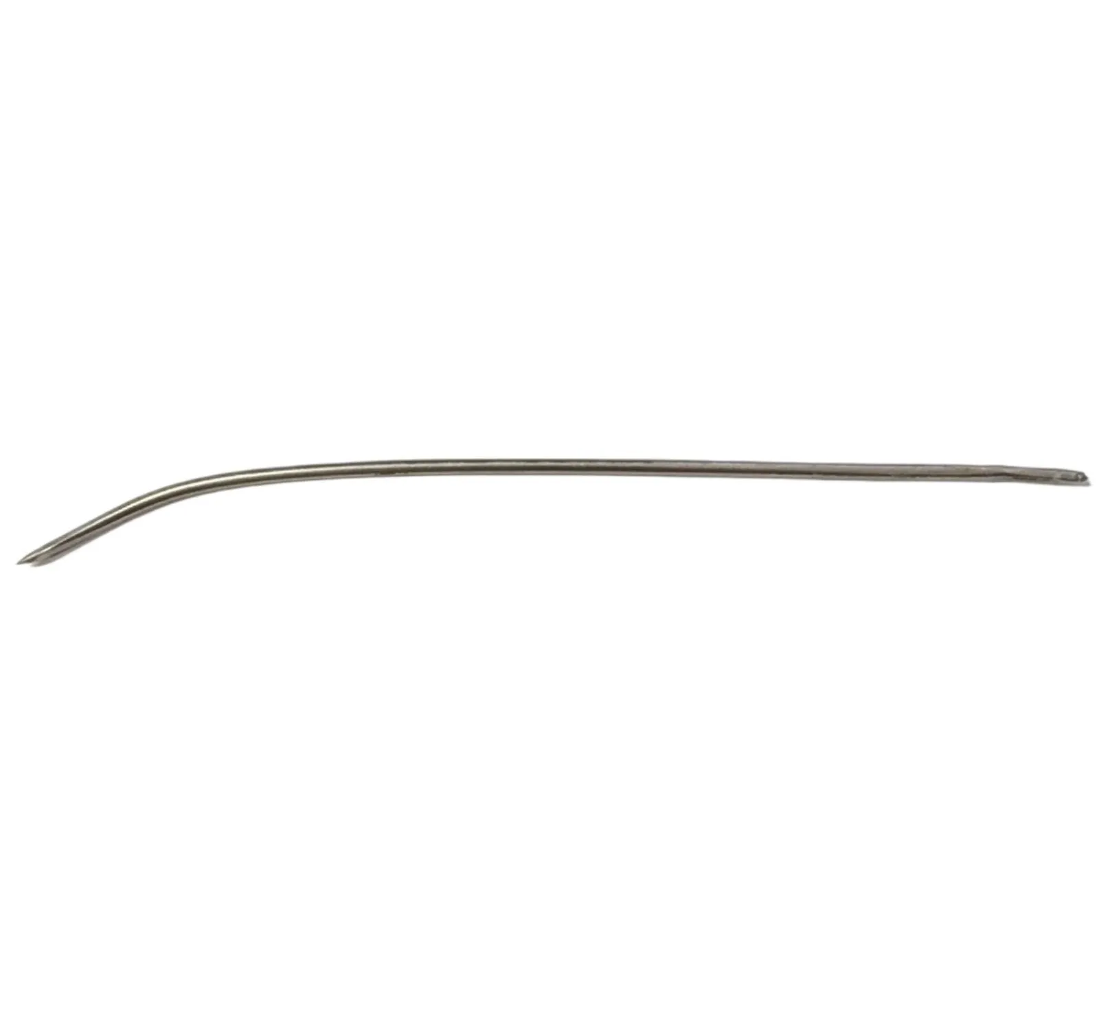 The needle is 20cm long, has a large eyelet for the butchers twine to loop through, is made from food grade 304 stainless steel and has a very sharp point to pierce through the flesh of the animal