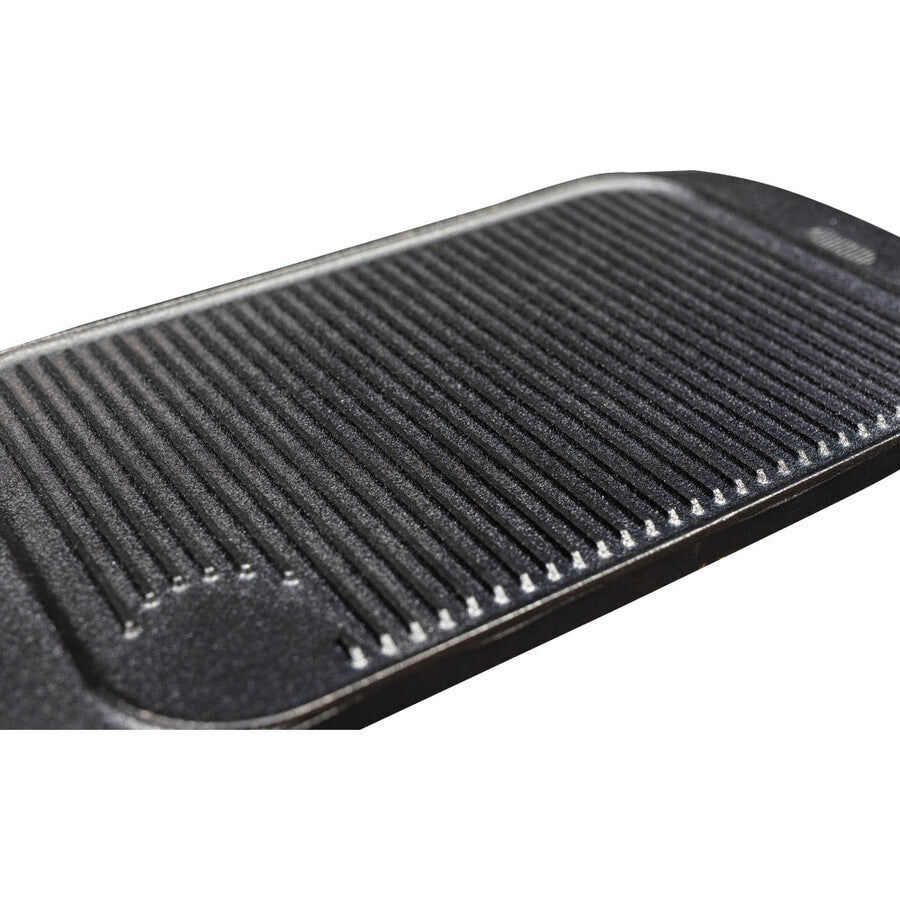 Double-Sided Design Ribbed side for searing and flat side for delicate cooking