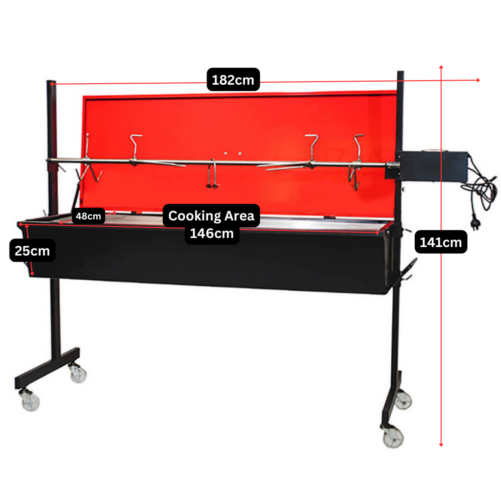 Dimensions 150cm (L) x 52cm (W) x 25cm (D) ideal for large roasts and whole animals