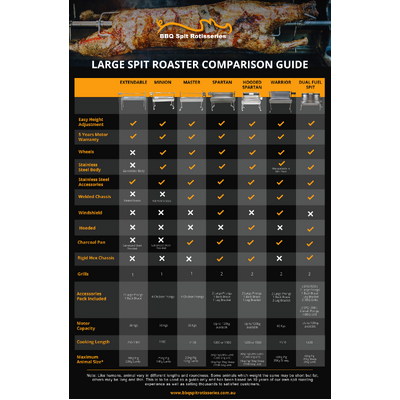 Fitted with a powerful 240V electric motor rated to 60kg, the Warrior ensures you can roast whole lambs, pigs, goats or multiple chickens with ease. The height-adjustable skewer and tub give you total control over your cook, while the solid stainless steel components guarantee long-term durability.