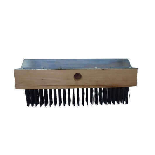 Wire Pizza Oven Brush with Handle. Push the fire to the rear of your oven using the metal scraper and use the wire brush to sweep away the ashes. With 95cm wooden handle, so you don't burn your hands.