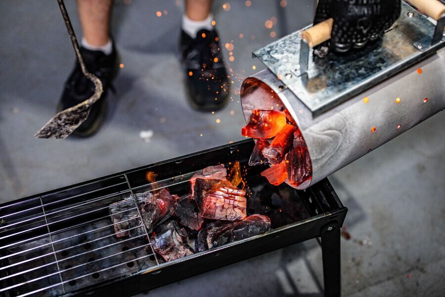 Also great for moving the hot coals in a spit roaster, charcoal BBQ or fireplace.