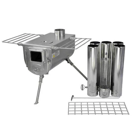 The Winnerwell Woodlander Stove is made from 304 stainless steel, ensuring long-lasting durability and resistance to rust or corrosion. This high-quality material is ideal for handling extreme outdoor conditions while maintaining optimal heating and cooking performance.