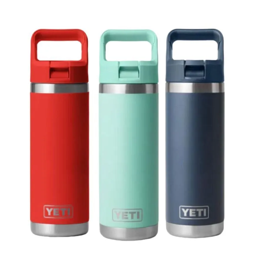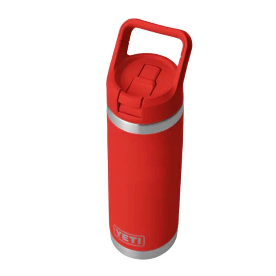 Yeti Rambler Straw Bottle 18oz. Don't waste a moment staying hydrated during your morning hikes, kayak adventures, or daily travels with our convenient flip and sip water bottle featuring a color-matched straw cap. The Rambler® 18 oz. Water Bottle boasts a leak-resistant cap and a convenient TripleHaul™ Handle for easy portability, ensuring cold water is always at hand. With its over-engineered design and double-wall insulation, your water stays cold until the very end, and it's dishwasher safe for effortless cleaning. Enjoy more refreshment with every sip, thanks to the included wide-straw insert.