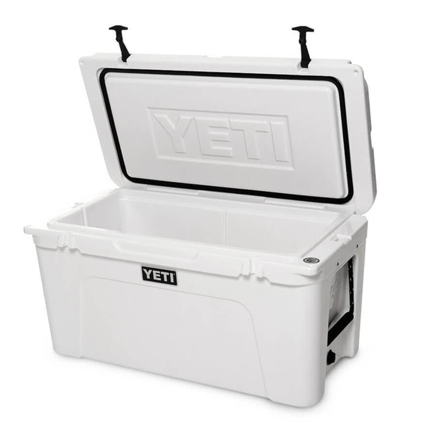 During a tailgate, BBQ, or day at the lake, the YETI Tundra Hard Cooler White 75 is the ideal outdoor cooler for keeping your family and friends fed and hydrated.